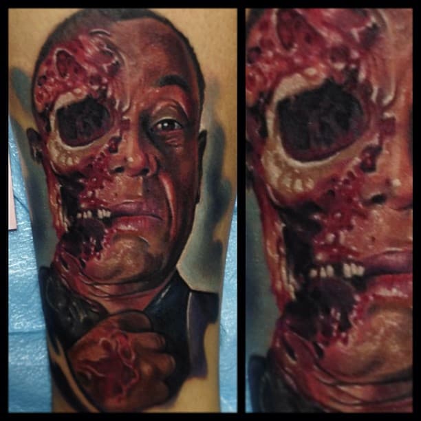Breaking Bad Tattoo / Amazing #walterwhite (#Heisenberg) tattoo portrait by ... / Tattoos of breaking bad, tattoo flash breaking bad.. Have you noticed all episodes, bought every dvd and repeated an effective quantity of lines in your mind? Breaking bad was one of the best television shows of all time. Bryan cranston got a breaking bad tattoo! In some cases, the tattoo shows the full portrait of the character. He got it on the last day of filming because one of the guys in the art department is a tattoo artist.